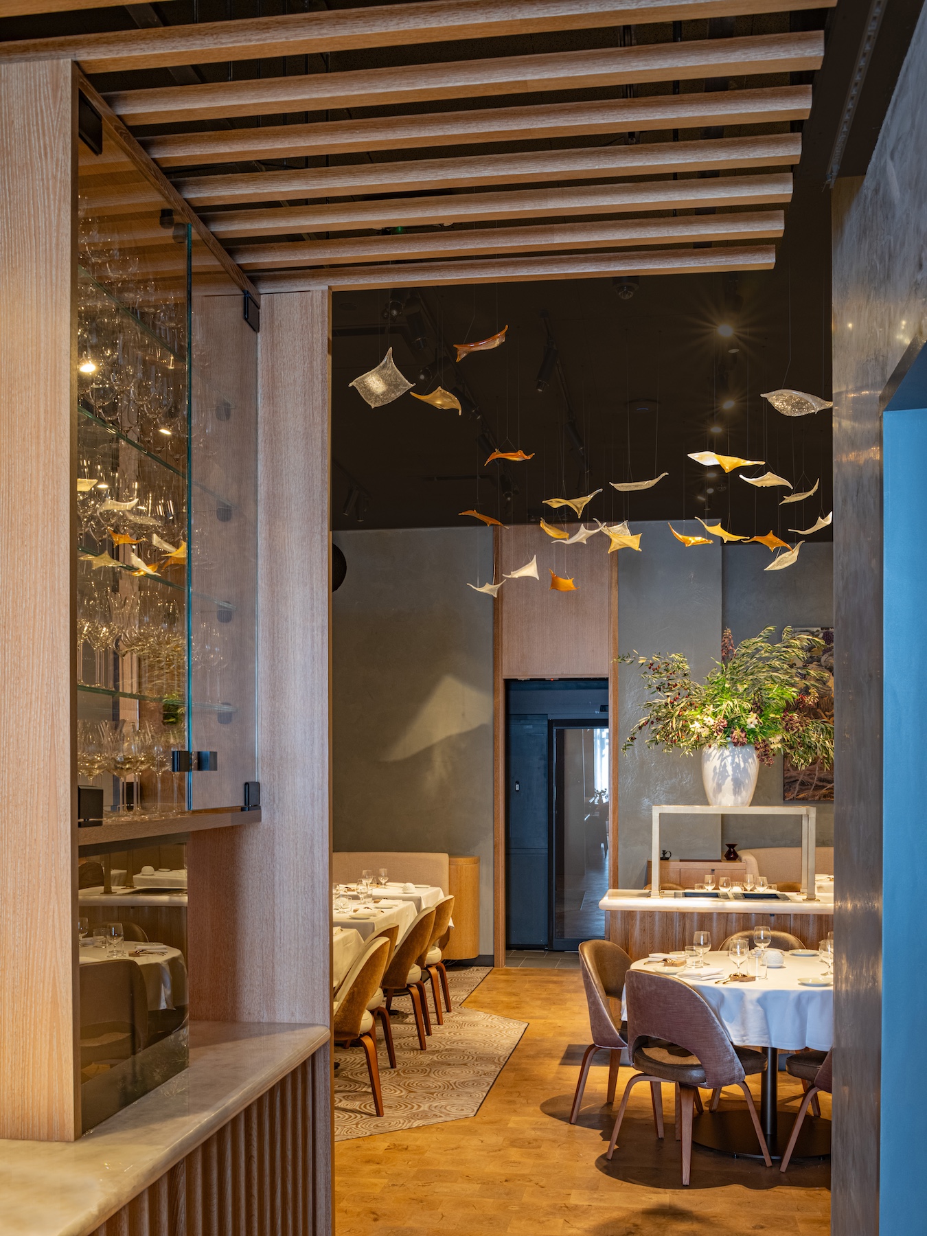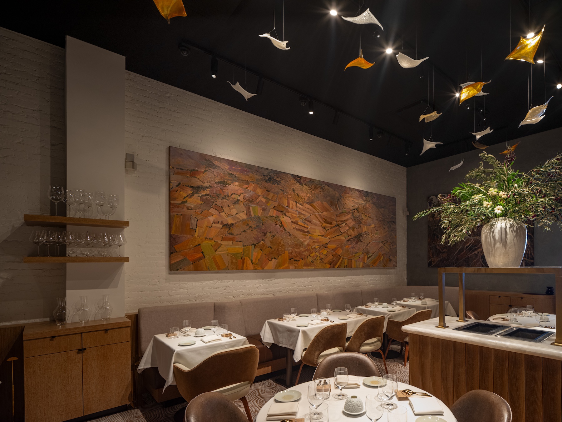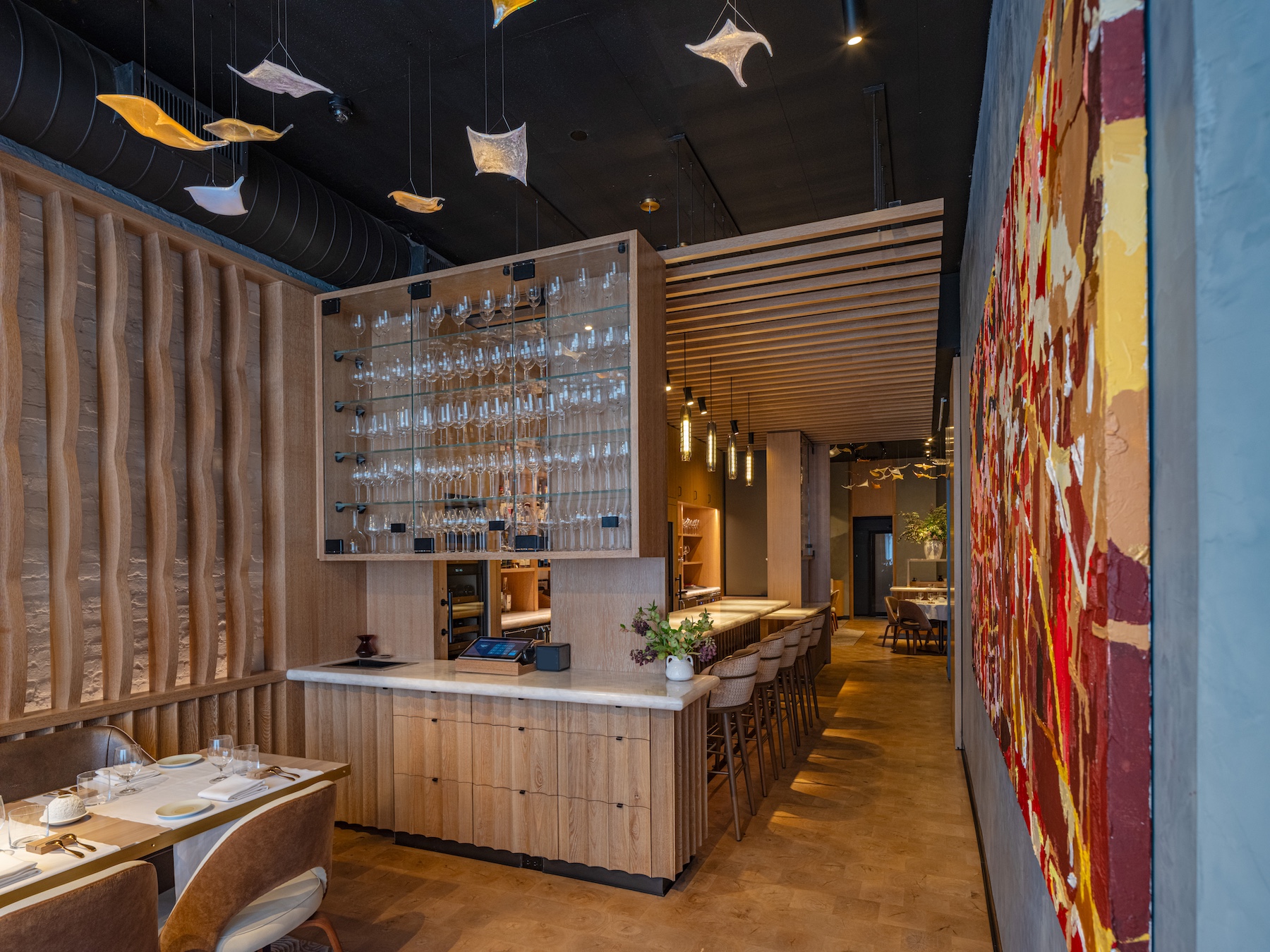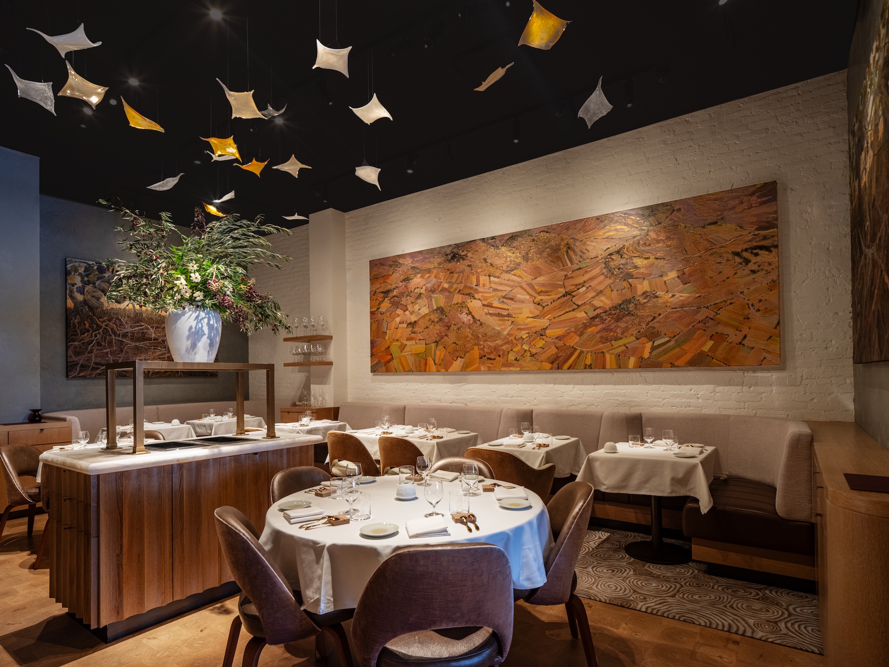 Blueberry was brought in at the early stages of Saint Urban’s planning to bring Chef Jared Ian Stanford-Hill’s wine-focused restaurant to life. Designed by the award-winning architecture firm Bentel and Bentel, every surface of the stunning dining room and bar compliments the region-specific tasting menu that Chef curates each month. A full gut renovation of the previous restaurant involved complicated electrical upgrades to the building and an HVAC along with a kitchen exhaust overhaul. Exterior repairs to the landmark building in Gramercy aided the creation of a world class chefs’ kitchen on both the ground and cellar floors. The front of house finishes includes end grain wood flooring, custom millwork and banquettes, plaster walls, stone counters, custom tables, and beautiful artwork curated by the Bentel and Bentel team.